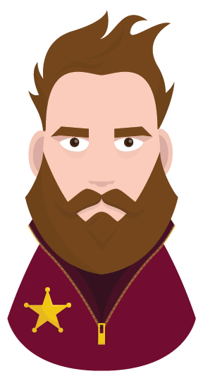 At first sight you can see a cartoonized image of a sheriff. Now imagine how it would look with shadows and gradient shadings. Exactly, FD says no to gradients, shadows and other blending effects. It offers a unique two dimensional approach using simple color shades to achieve 3D depth. If you cast a second look you will see that it consists of only different color plays which give life to the image when correctly chosen.